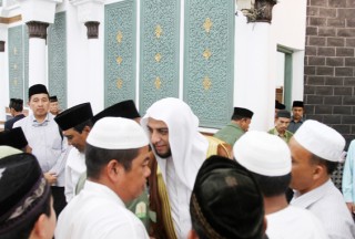 SERAMBINEWS.COM, BANDA ACEH - Usai mengimami dan mengisi ceramah Subuh, Syekh Ali Saleh Muhammad Ali Jaber, Selasa (29/5/2012), menyempatkan foto bersama Pj Gubernur Aceh, Tarmizi A Karim di Halaman Masjid Raya Baiturrahman, Banda Aceh.