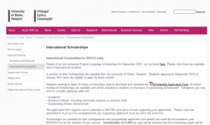 of Wales menyedian 10 beasiswa untuk sarjana dan 5 beasiswa