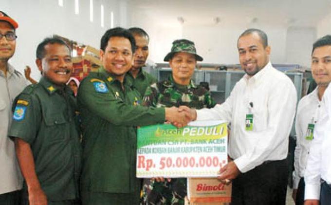 PT Bank Aceh kembali membantu dana untuk korban banjir di Kabupaten Aceh Timur Rp 50 juta. Bantuan tersebut diserahkan