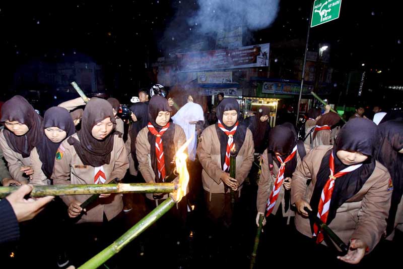 Tetapi sekitar pukul 21.00 WIB, upacara tetap dilaksanakan di bawah guyuran hujan. Namun, untuk kegiatan pawai berkekeliling membawa obor jalurnya dipersingkat, mengingat kondisi hujan yang semakin deras.