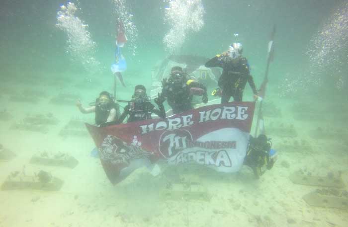Upacara pengibaran Merah Putih di Perairan Gapang diprakarsai Korp Marinir berlangsung pukul 11.30 WIB. Upacara unik itu melibatkan 150 peserta dari unsur TNI/Polri dan Ormas. Prosesi peringatan detik-detik proklamasi di dasar laut disiarkan oleh salah satu TV swasta secara serentak di tiga daerah lainnya itu dipimpin langsung oleh Dan Brigif 2 Mar Jakarta Kol Mar Ali B Saragih.