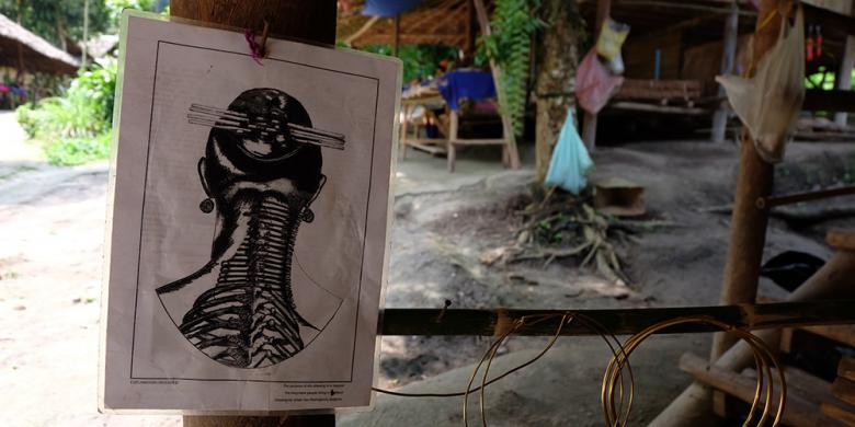 Para wanita Suku Karen mengenakan kalung bertumpuk-tumpuk. Mereka melakukan tradisi ini sejak masih gadis. Semakin panjang leher, semakin cantik mereka di mata pria.(KOMPAS.COM/SRI ANINDIATI NURSASTRI)