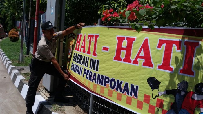 Di spanduk imbauan tersebut bertuliskan "Hati-hati Daerah Ini Rawan Perampokan,".