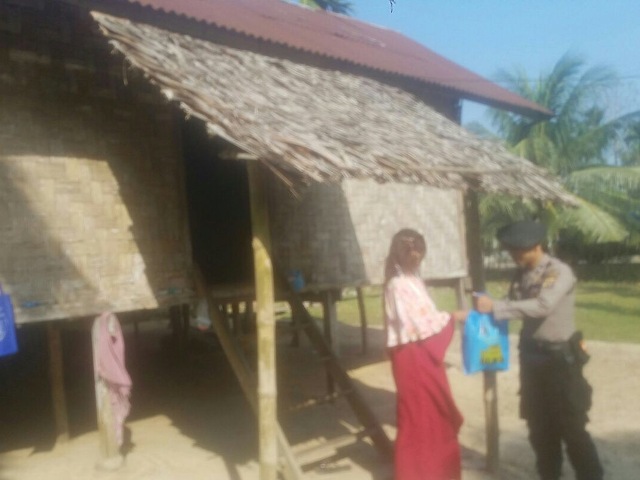 Sambil patroli, polisi pun membagikan sembako pada kaum duafa.