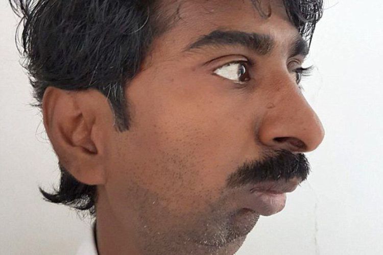 Rajendra Panchal (39), terjatuh dengan wajahnya menghantam tanah saat baru berusia satu tahun.