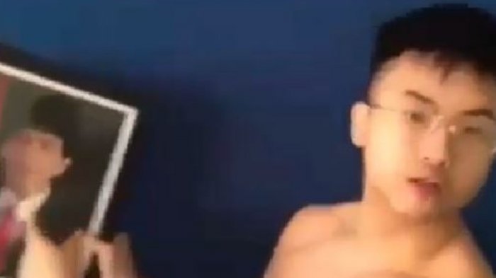 Sambil menunjuk ke arah foto Jokowi, pemuda itu melontarkan ujaran kebencian bahkan mengancam akan menembak Jokowi.