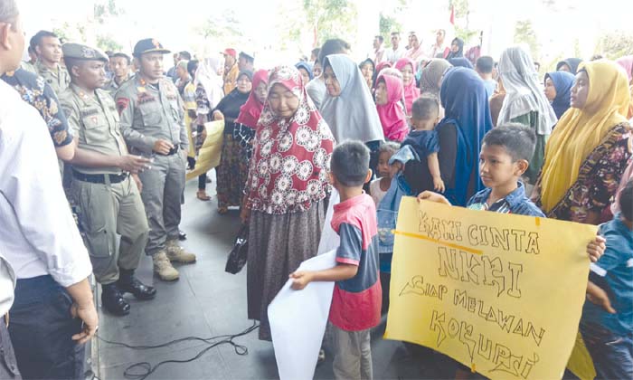 BLANGPIDIE - Seratusan warga Desa Geulanggang Gajah, Kecamatan Kuala Batee, Aceh Barat Daya (Abdya), menggelar aksi ke kantor DPRK Abdya, Rabu (15/8). Kedatangan mereka untuk meminta pemerintah agar melakukan upaya banding terkait putusan Pengadilan Tata Usaha Negara (PTUN) yang memenangkan mantan keuchik setempat. Dalam putusan itu, majelis hakim memenangkan Iskandar selaku penggugat terkait pencopotan dirinya yang dilakukan oleh pemkab beberapa waktu lalu.