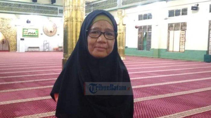 Wanita ini langsung menebarkan senyum saat menyambut kedatangan TRIBUNBATAM.id di masjid Al-Hikmah Tanjungpinang, Selasa (13/11/2018) siang.