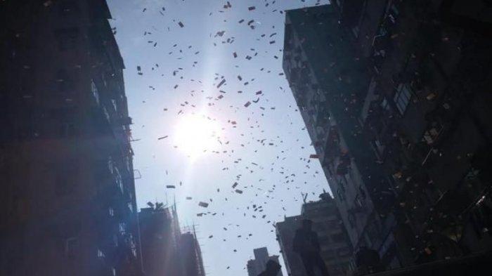 SERAMBINEWS.COM - Fenomena hujan uang di Hong Kong membuat warga heboh dan berhamburan ke jalan.