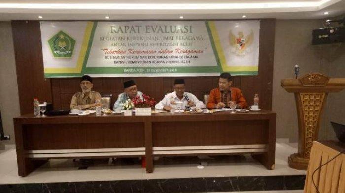Penolakan itu disampaikan dalam Rapat Evaluasi Tahunan Kegiatan Kerukunan Umat Beragama Antar Instansi se-Provinsi Aceh dengan tema “Tebarkan Kedamaian dalam Keragaman” yang digelar Kanwil Kemenag Aceh di Hotel Grand Arabia, Rabu (19/12/2018).