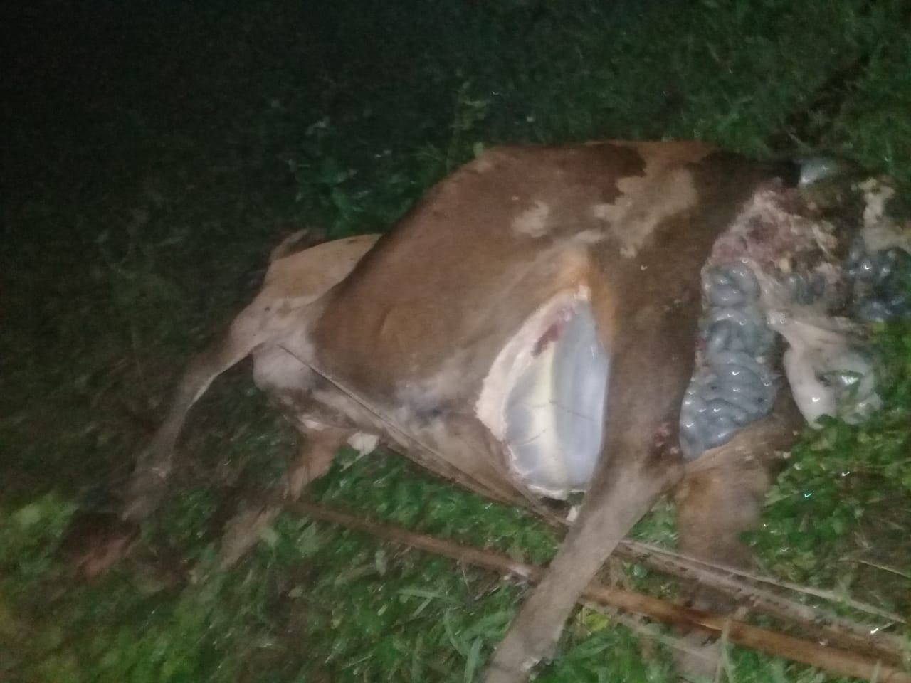 Setelah tiba di lokasi, anggota menemukan satu ekor sapi dalam keadaan mati dengan kondisi perut sapi tersebut dalam keadaan robek akibat di mangsa oleh Harimau liar.
