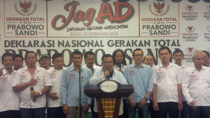 Hal ini terungkap dari Ketua Presidium Nasional Jagad, Agus Yusuf Ahmadi saat deklarasi yang dihadiri oleh Badan Pemenangan Nasional (BPN) Prabowo-Sandi di Lorin Solo Hotel, Kecamatan Colomadu, Kabupaten Karanganyar, Sabtu (23/2/2019).