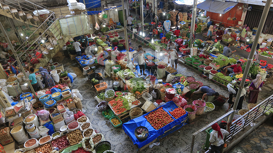 Pedagang menunggu pembeli di pasar Kartini Peunayong, Banda Aceh, Selasa (26/3/2019).