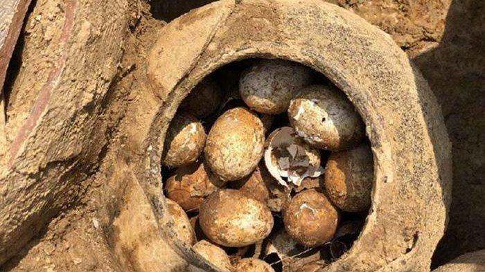 Telur-telur itu digali dari lapisan kedua hingga terendah dari kompleks pemakaman kuno enam tingkat yang terdiri dari total 38 liang kubur.