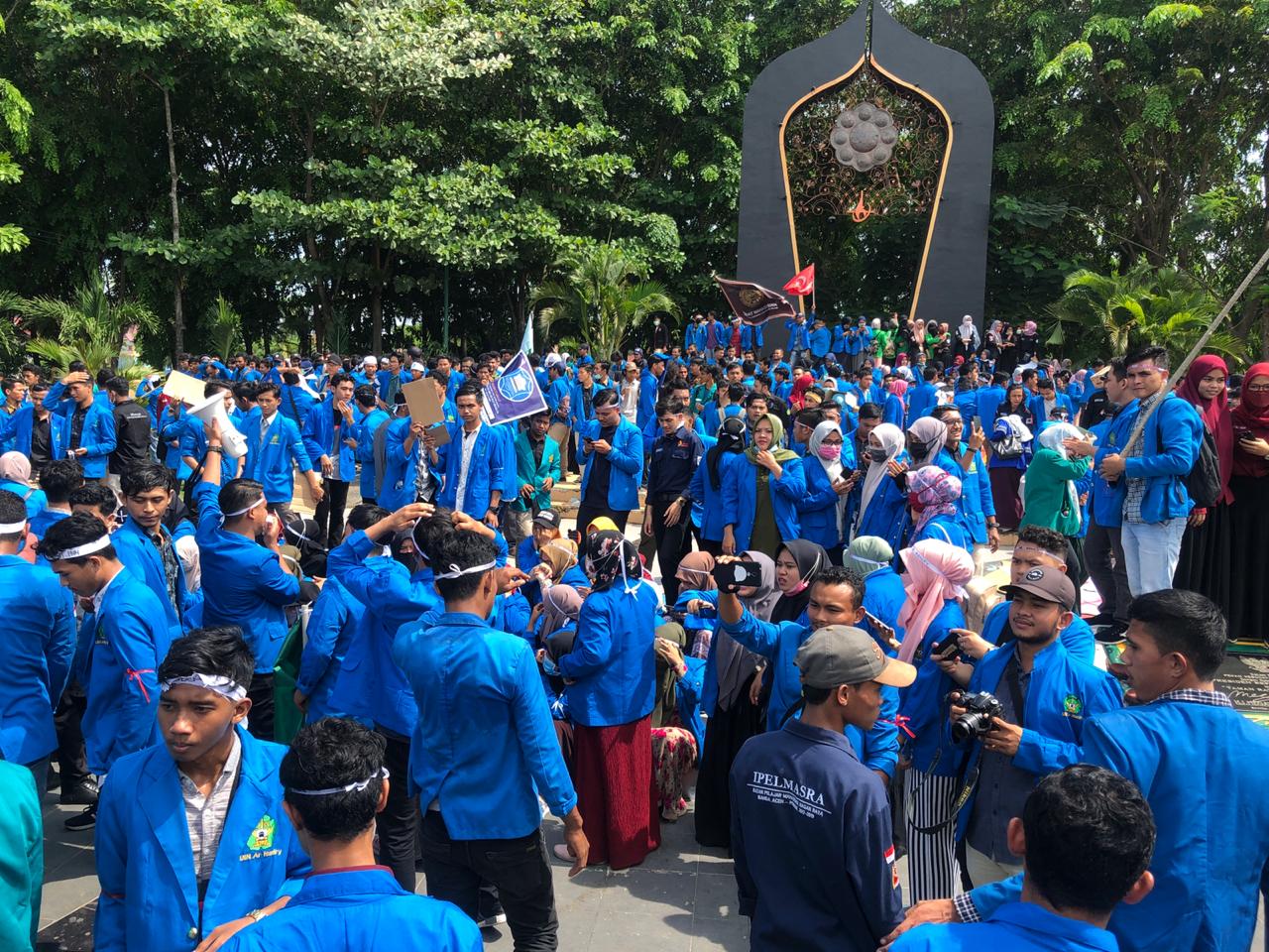 SERAMBINEWS.COM, BANDA ACEH - Ratusan bahkan seribuan mahasiswa kembali berkumpul di tugu Taman Ratu Safiatuddin, Banda Aceh, Rabu (10/4/2019).