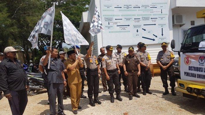 KIP dan Forkopimda Kota Langa, (16/4/2019) siang melepas pendistribusian kotak dan surat suara Pemilu 2019 ke 451 Tempat Pemungutan Suara (TPS).
