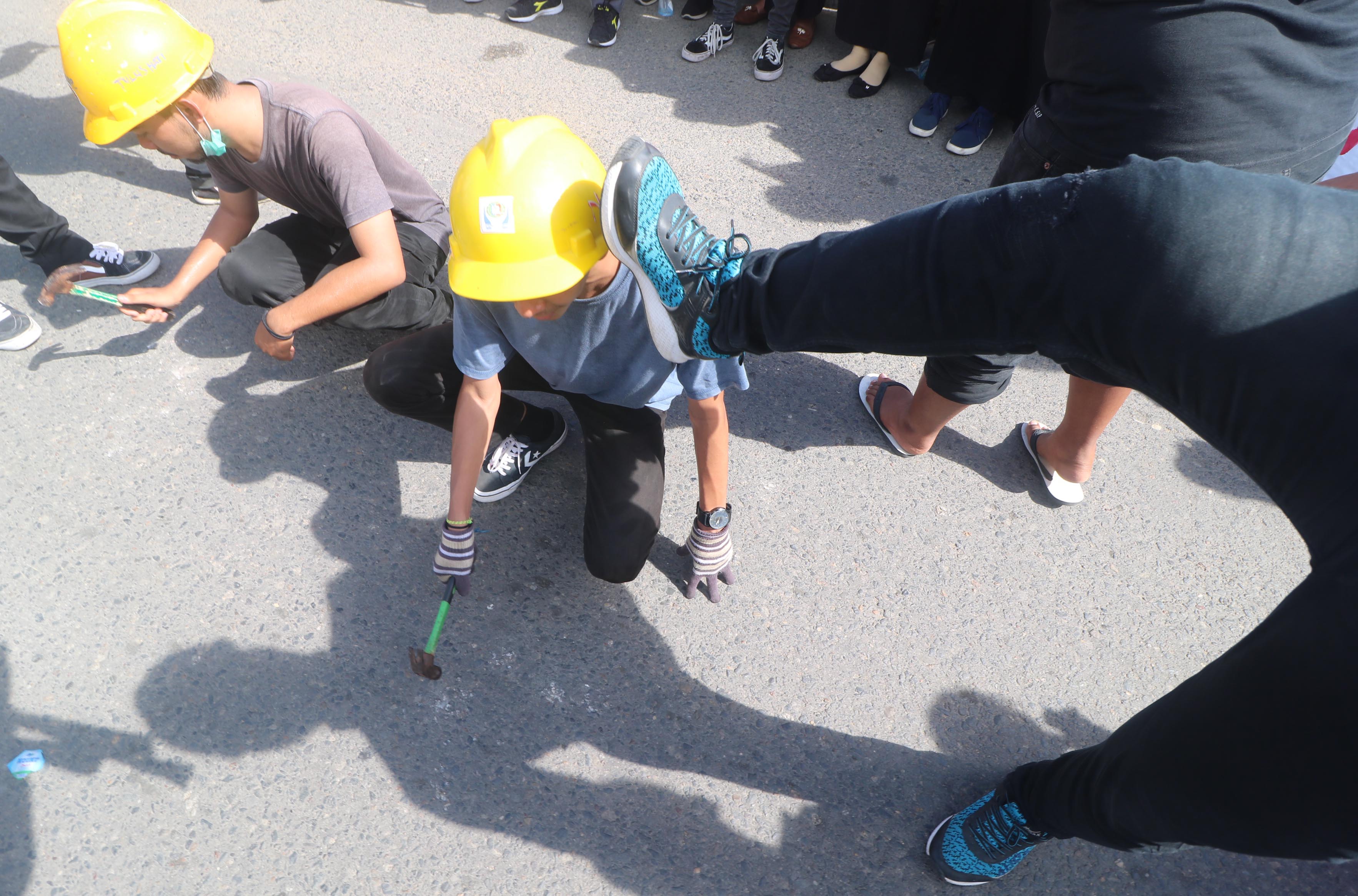 Di lokasi tersebut, mahasiswa mulai berorasi secara bergantian, serta menggelar teatrikal tentang sosok pengusaha yang kejam dengan memperkerjakan buruhnya semena-mena.