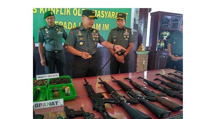 BREAKING NEWS - Pangdam IM Terima 12 Pucuk Senjata Bekas Konflik dari Warga, Ini Jenisnya
