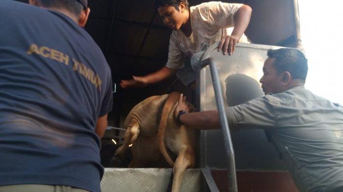 Puluhan hewan ternak yang berkeliaran di kawasan Pusat Pemerintahan Aceh Timur, diamankan oleh Satpol PP dan WH Aceh Timur, Rabu (22/5/2019).