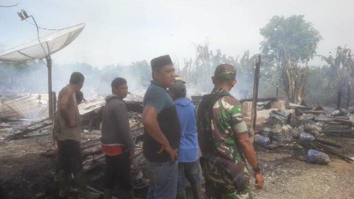Barak karyawan PT Surya Panen Subur (PT SPS) di kawasan Desa Pulo Kruet, Kecamatan Darul Makmur, Kabupaten Nagan Raya ludes terbakar,