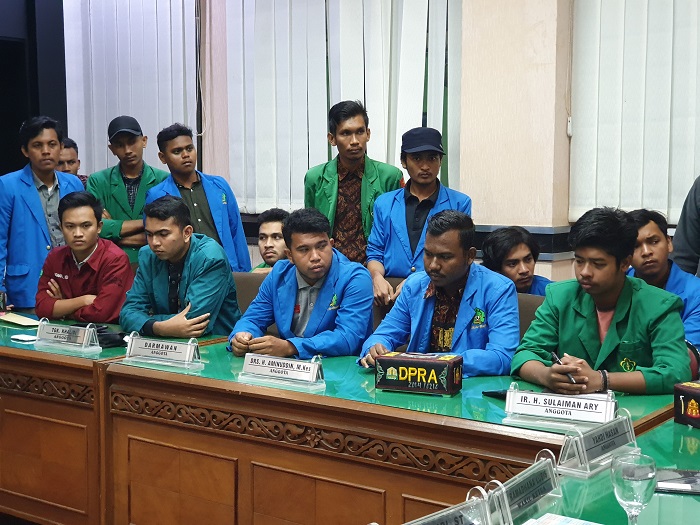 Mahasiwa yang melancarkan demo menggelar konferensi pers sehari setelah itu di ruang Komisi II DPRA, Jumat (16/8/2019). SUBUR DANI