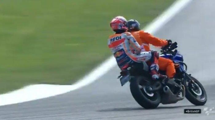 Marquez Kehabisan Bensin di MotoGP Inggris, Disalip Alex Rins Jelang Finish hingga Dibonceng Marshal