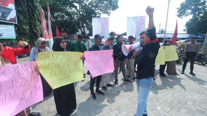 Puluhan mahasiswa berdemo di depan kantor BPJS Lhokseumawe, untuk menolak rencana kenaikan iuran BPJS.