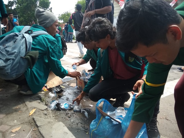 Usai Demo, Mahasiswa Pungut Sampah di Jalan