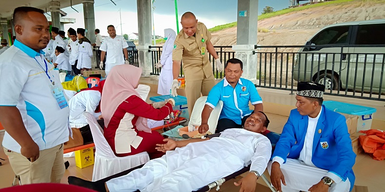 SERAMBINEWS.COM, IDI – Darah sebanyak 29 kantong berhasil dikumpulkan oleh petugas Unit Transfusi Darah (UTD) RSUD dr Zubir Mahmud, Aceh Timur, dalam kegiatan donor darah yang digelar usai Peringatan Hari Santri Nasional (HSN) ke-5 tahun 2019, di Lapangan Puspemkab Aceh Timur, Selasa (22/10/2019).