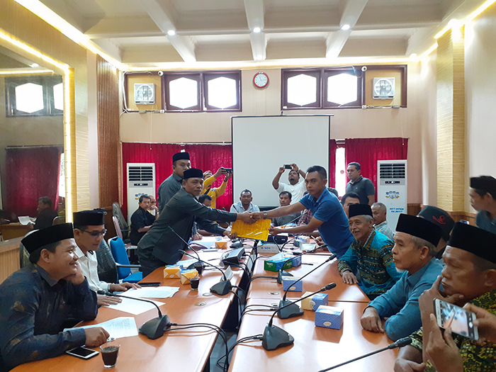 SERAMBINEWS.COM, TAPAKTUAN - Masyarakat Trumon Timur dan ahli waris pemilik lahan Pabrik Kelapa Sawit (CPO) Krueng Luas, Kecamatan Trumon Timur, Kabupaten Aceh Selatan, Senin (28/10/2019) beraudensi ke DPRK Aceh Selatan.
