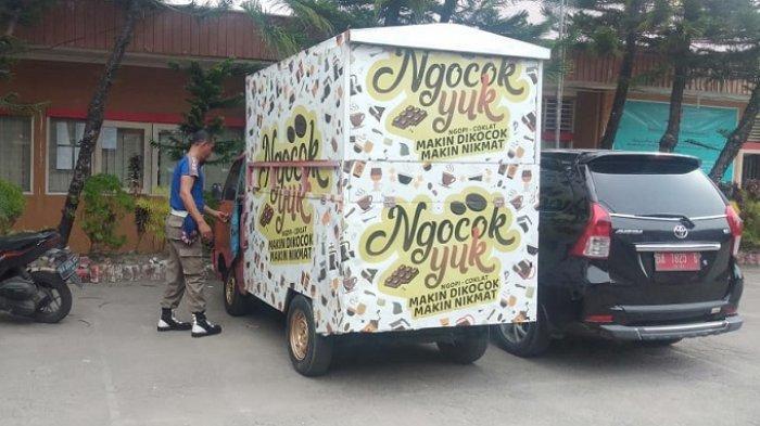 SERAMBINEWS.COM, PADANG - Satuan Polisi Pamong Praja Kota Padang, Sumatera Barat, mengamankan satu unit mobil usaha minuman kopi cokelat bertuliskan 'Ngocok Yuk'.