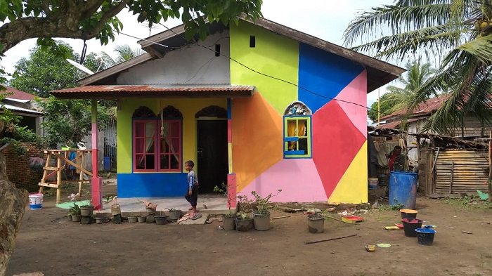 Dia menjelaskan pengecatan ini belum selesai karena dari total 160 unit rumah di wilayah itu, baru 74 rumah yang dicat warna-warni.