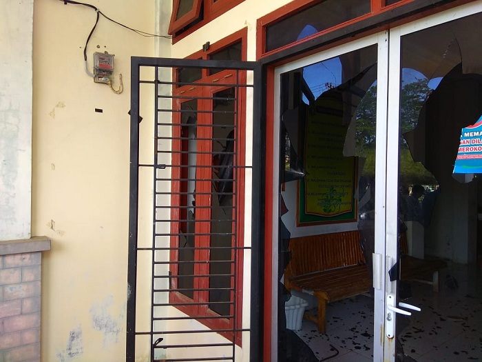 Akibat pengrusakan tersebut, belasan pot bunga di halaman Kantor Camat Montasik hancur, termasuk dua bilah kaca pintu masuk serta sejumlah jendela di kantor milik pemerintah tersebut hampir tak tersisa.