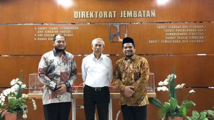 SERAMBINEWS.COM, REDELONG - Bupati Bener Meriah, Tgk H Sarkawi didampingi Plt Kepala Dinas PUPR Bener Meriah, Erwin ST MSi menemui Direktur Jembatan Direktorat Jenderal Bina Marga Kementerian PUPR, Ir Iwan Zarkasi Eng Sc untuk menyampaikan usulan pembangunan Jembatan Enang-Enang.
