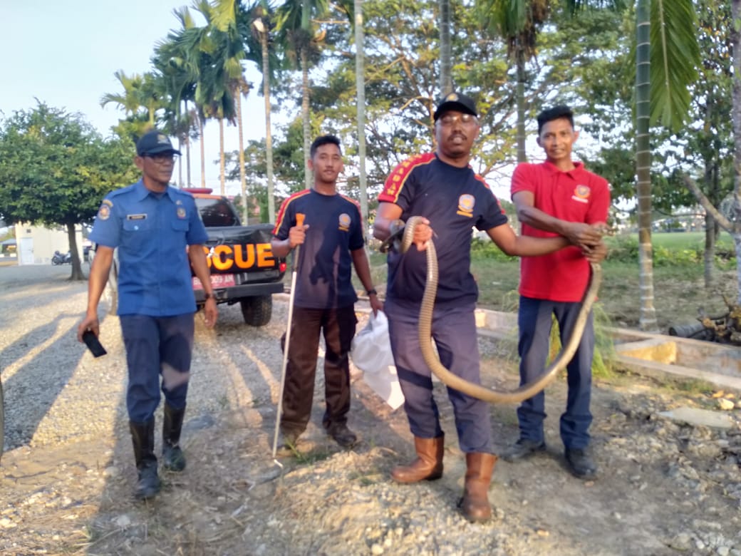 Ular Kobra Bersarang di Rumah Warga, Tim Damkar Aceh Tamiang Turun Tangan