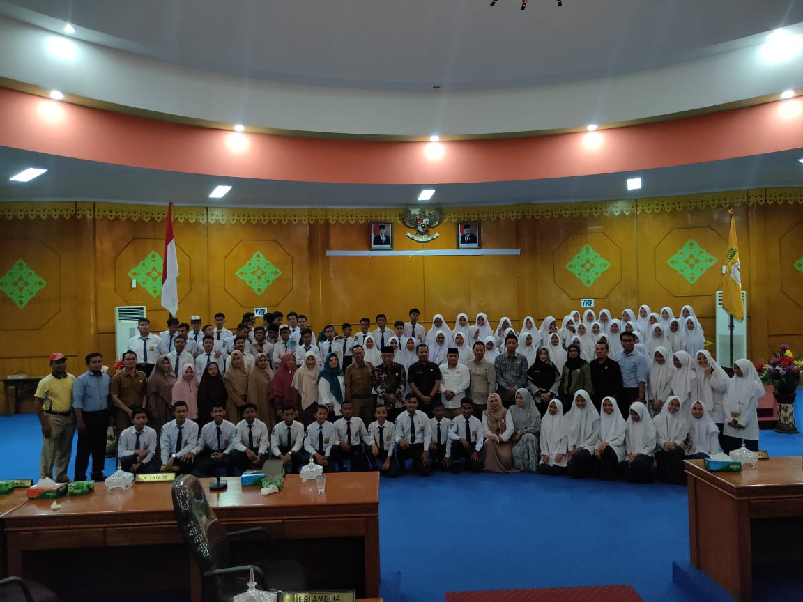 SERAMBINEWS.COM, KUALASIMPANG - Sebanyak 90 siswa SMPN 4 Percontohan Karangbaru melakukan kunjungan belajar ke DPRK Aceh Tamiang, Senin (27/1/2020).