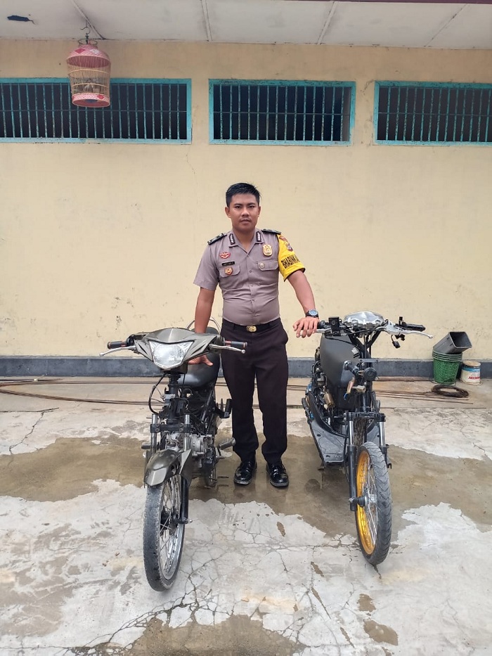 Saat anggota Polsek Langsa Timur melakukan patroli, melihat sejumlah remaja dengan sepmor yang sudah dimodifikasi memakai kenalpot blong berkumpul.