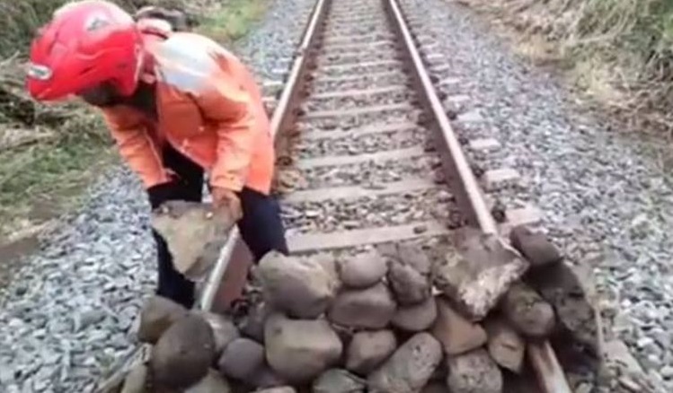 Sebuah video yang memperlihatkan tumpukan batu di atas rel kereta api di wilayah Daerah Operasi (Daop) 9 Jember, Jawa Timur,