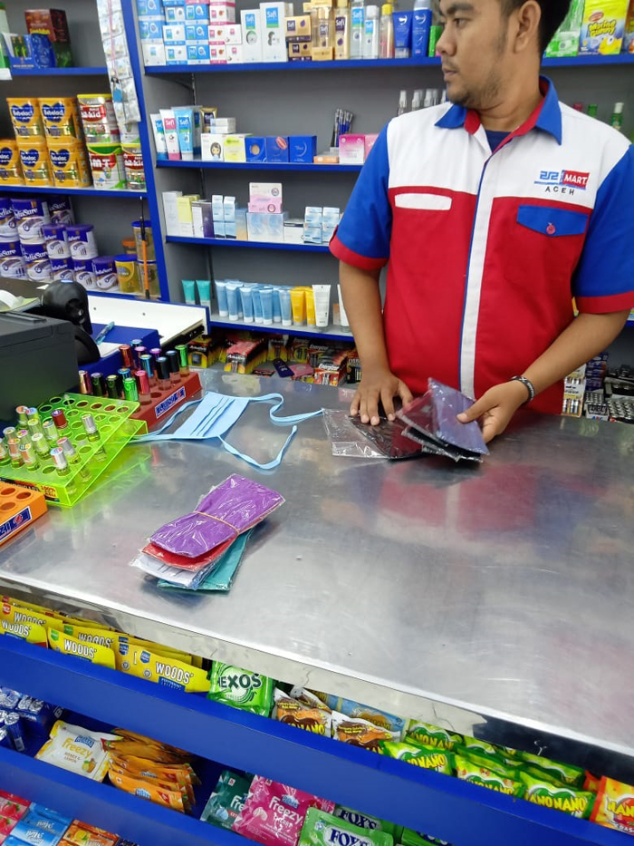 "Dalam dua hari ini penjualan masker meningkat sehingga stok kami menipis," kata seorang pelayan di 212 Mart, Lampriek, Banda Aceh.