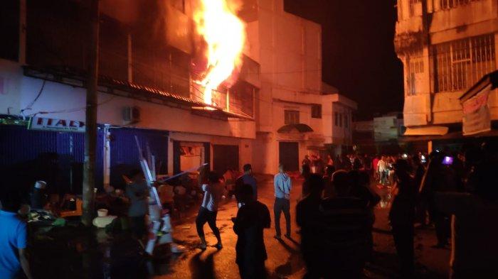 Warga sempat mengumandangkan azan saat dua ruko permanen di pusat pasar perbelanjaan Sigli, Pidie, Kamis (26/3/2020), malam terbakar