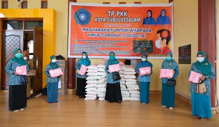 SERAMBINEWS.COM, SUBULUSSALAM – TP PKK Kota Subulussalam menyalurkan bantuan untuk sejumlah warga miskin yang terdampak akibat bencana corona atau covid-19 di daerah ini.