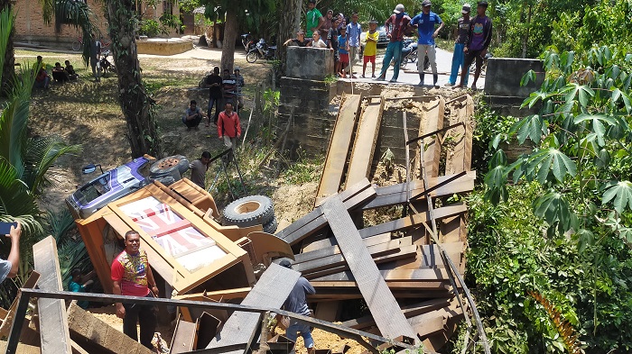 Jembatan tersebut ambruk jelas Hanafiah karena leger besinya tak tahan, karena tiang tengah lepas akibat pembersihan alur tahun lalu.(*)