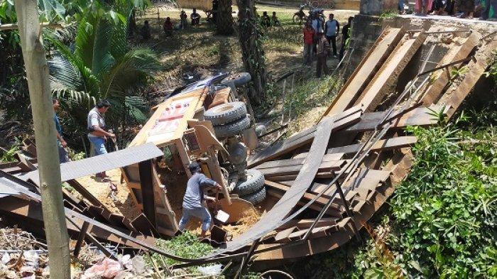 Jembatan Penghubung Tiga Desa di Peudawa Aceh Timur Ambruk, Dump Truk Bermuatan Terjungkal