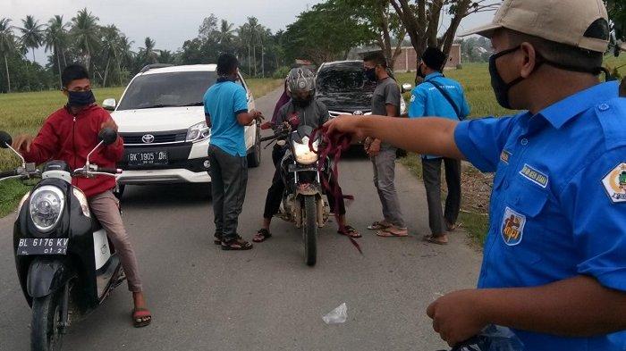 Masker dibagikan kepada para pengguna jalan, karena masyarakat yang melakukan aktivitas itu keluar kecamatan.