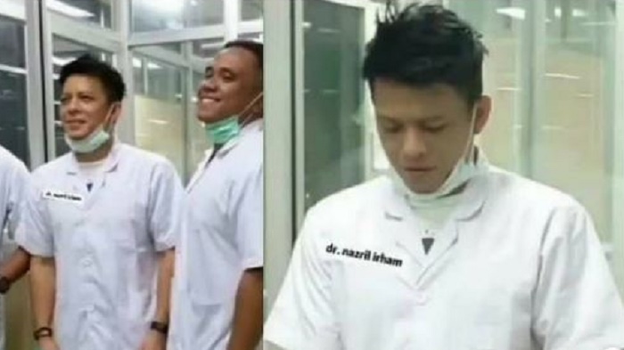 Foto itu merupakan hasil tangkapan dari video yang menampilkan Ariel dalam busana dokter dan menggunakan masker.