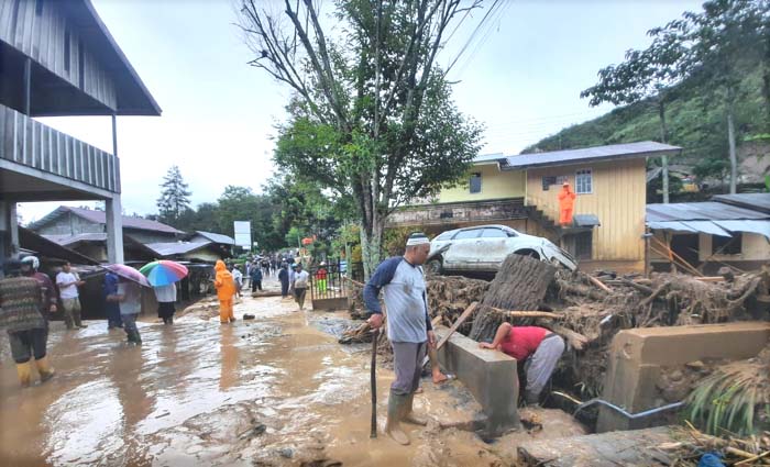 Dia menyebutkan, hujan deras yang melanda sejak siang kemarin bukan hanya menyebabkan banjir bandang, tetapi juga menimbulkan longsoran yang menutup badan jalan.