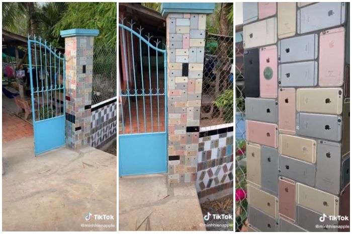 Video yang menjadi viral di TikTok itu memperlihatkan tembok pagar berlapis ratusan iPhone 6.