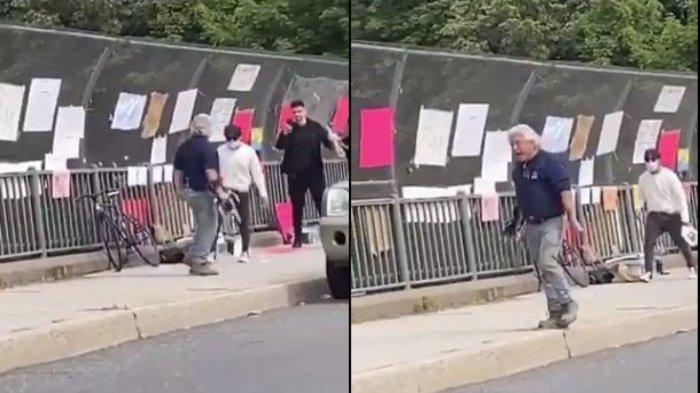 SERAMBINEWS.COM- Seorang pria kulit putih tampak mengamuk di tengah para demonstran pembela George Floyd.