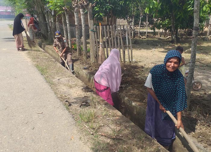 Disebutkan, kegiatan selain melibatkan seluruh kaum pria juga mengikutsertakan para ibu-ibu membersihkan saluran pinggir jalan dan tempat-tempat lainnya di desa yang memiliki tiga dusun yaitu Dusun Tgk Dikrueng, Alue Meueh dan Garap Timu.