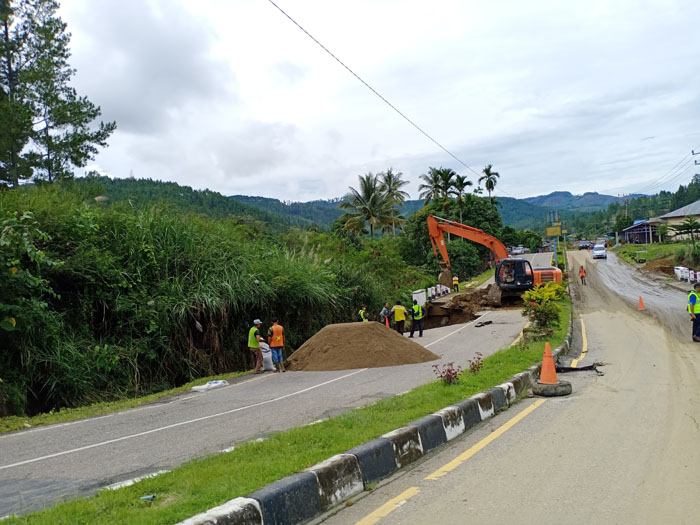 Petugas dari Balai Besar Pelaksanaan Jalan Nasional I wilayah Provinsi Aceh dalam hal ini PPK-17 dengan mengerahkan satu unit alat berat.